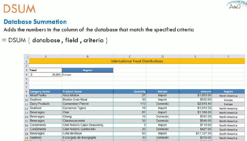 In the example depicted above, we sum the values in the Amount column based upon the criteria entered in column G.