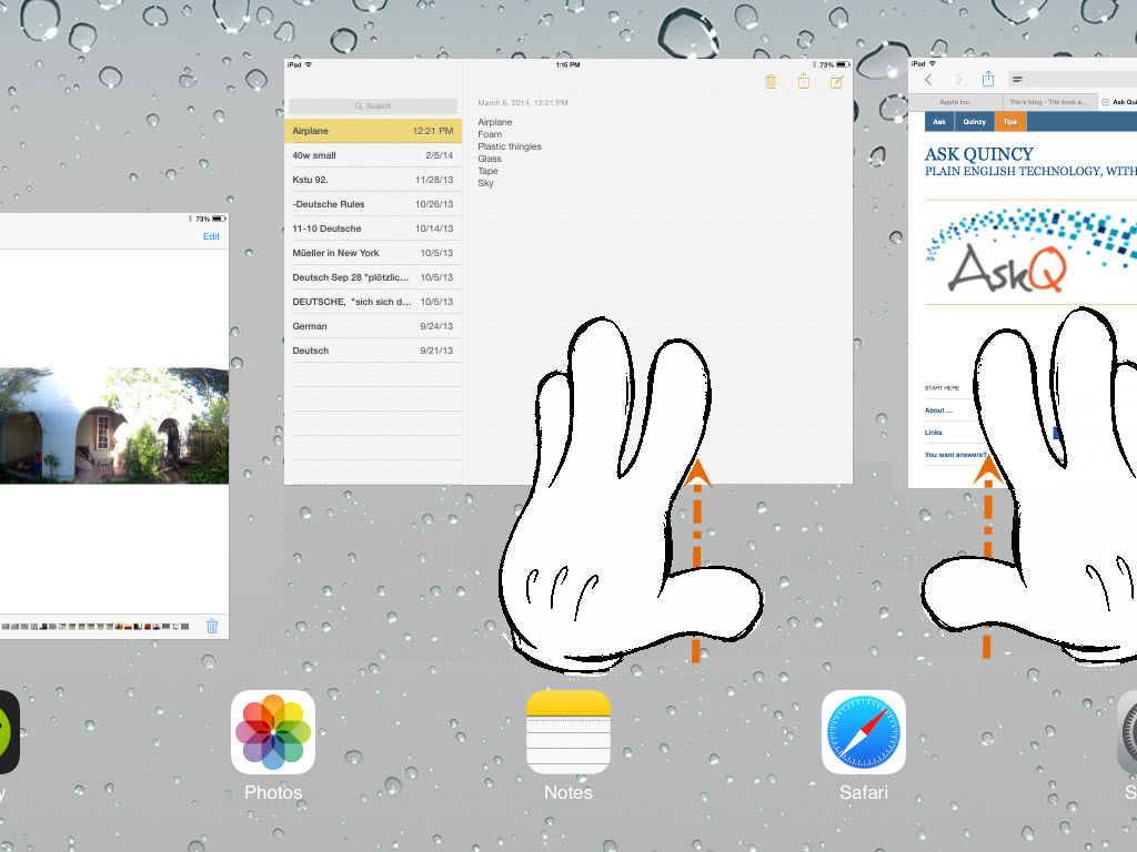 Double press the Home button to display running apps, then Flick app up & away to terminate. This gesture is far more satisfying than the previous ‘click the x‘ method.Bonus: you can flick-close multiple apps at a time!